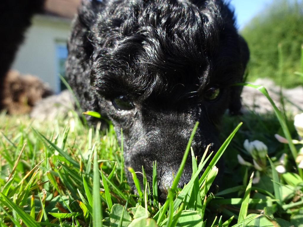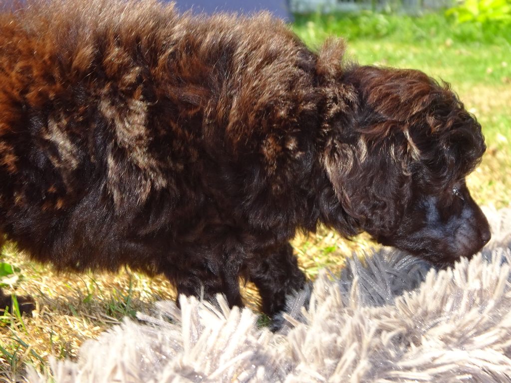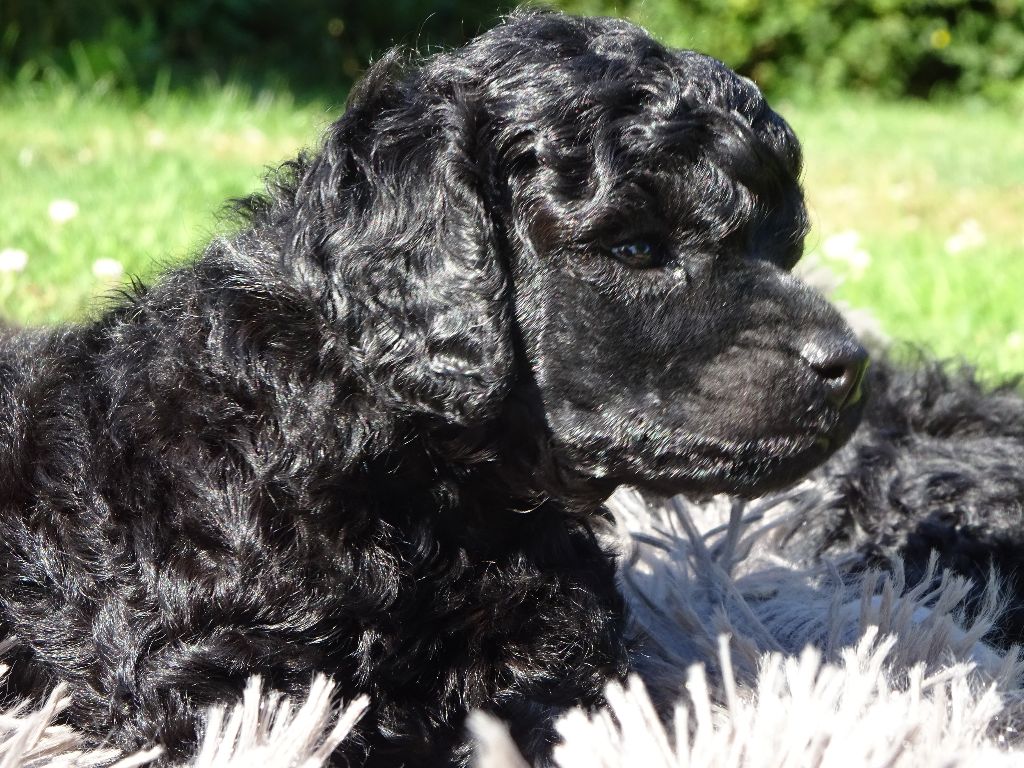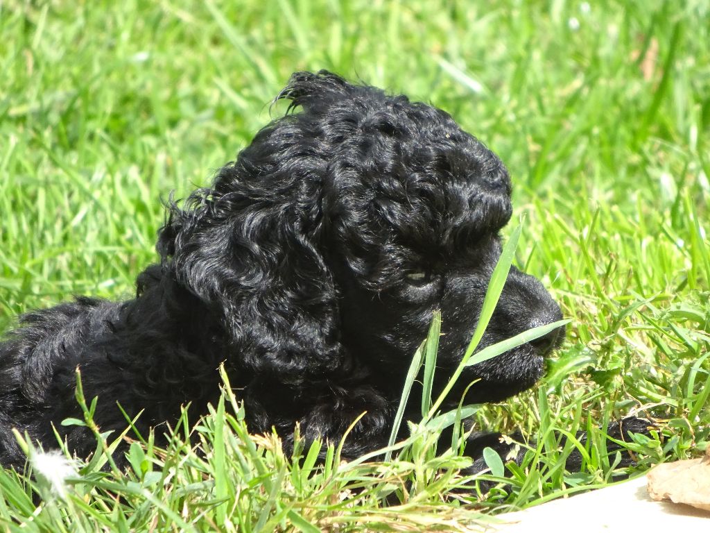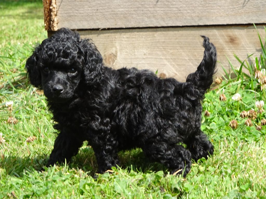 Mâle petit nain noir. Esprit joueur et éveillé. Très belle construction carrée. Excellent port de queue. Le plus petit des deux mâles, aura une très jolie tête. Elevage familial.
