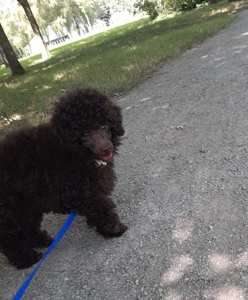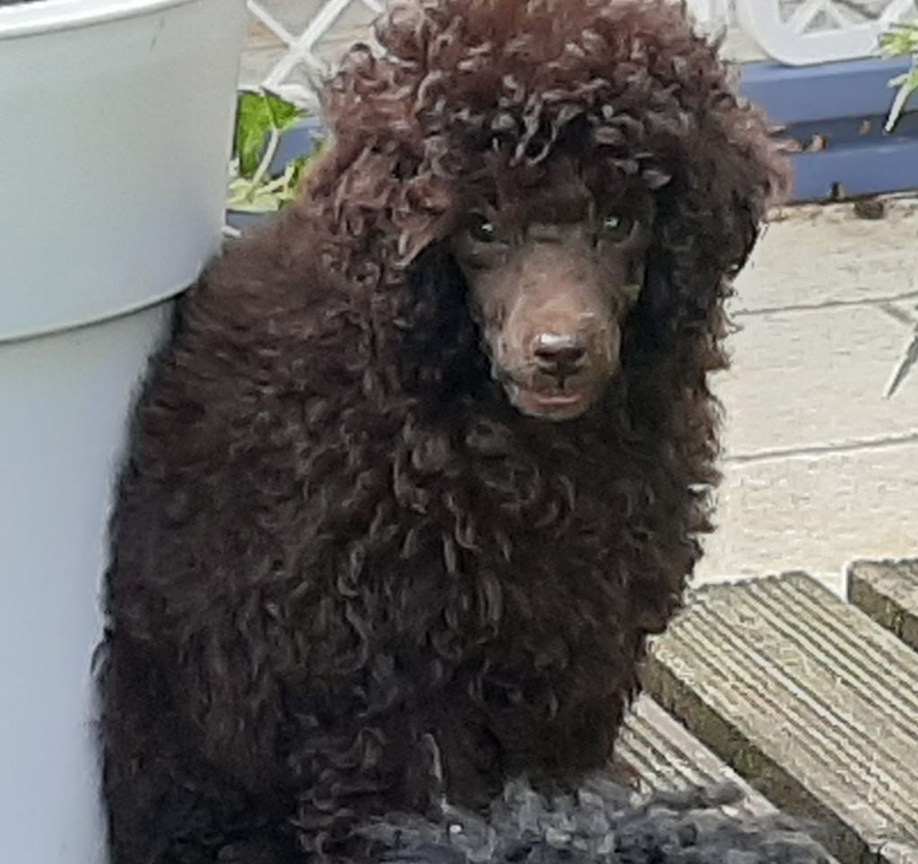 Chiot unique, Solweig a le caractère typique du caniche marron. Très intelligente, une peu indépendante, avec du caractère mais sensible.